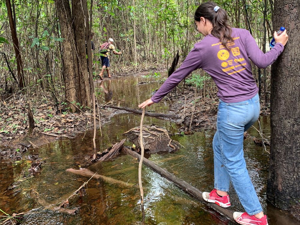O percurso começa com uma trilha de cerca de 3 quilômetros, imersa na exuberância da fauna e flora amazônicas, onde poderão aprender sobre plantas medicinais e técnicas de sobrevivência na selva.