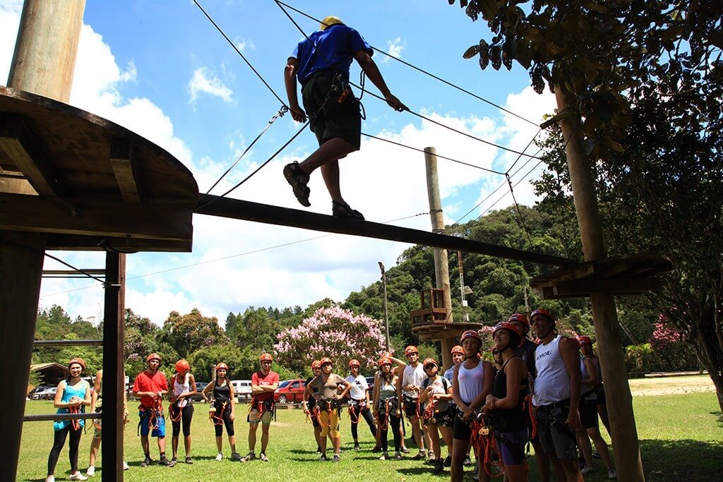 O arvorismo com tirolesa não exige experiência prévia, habilidades específicas ou condicionamento físico. O participante só precisa ter foco, coragem e muita concentração para acertar os movimentos e evoluir no percurso.