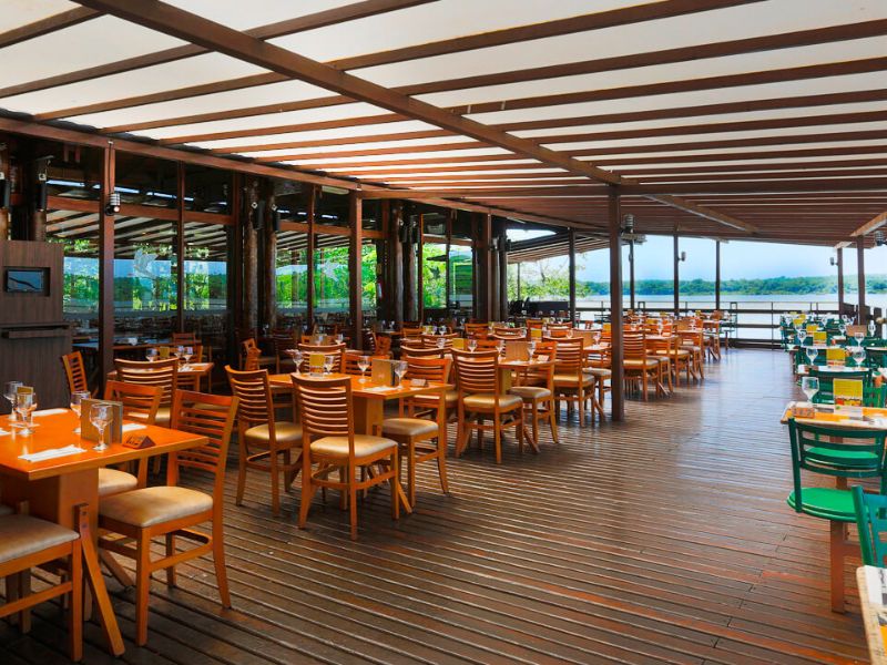Depois, um almoço delicioso no Restaurante Porto Canoas, com buffet variado e vista privilegiada.