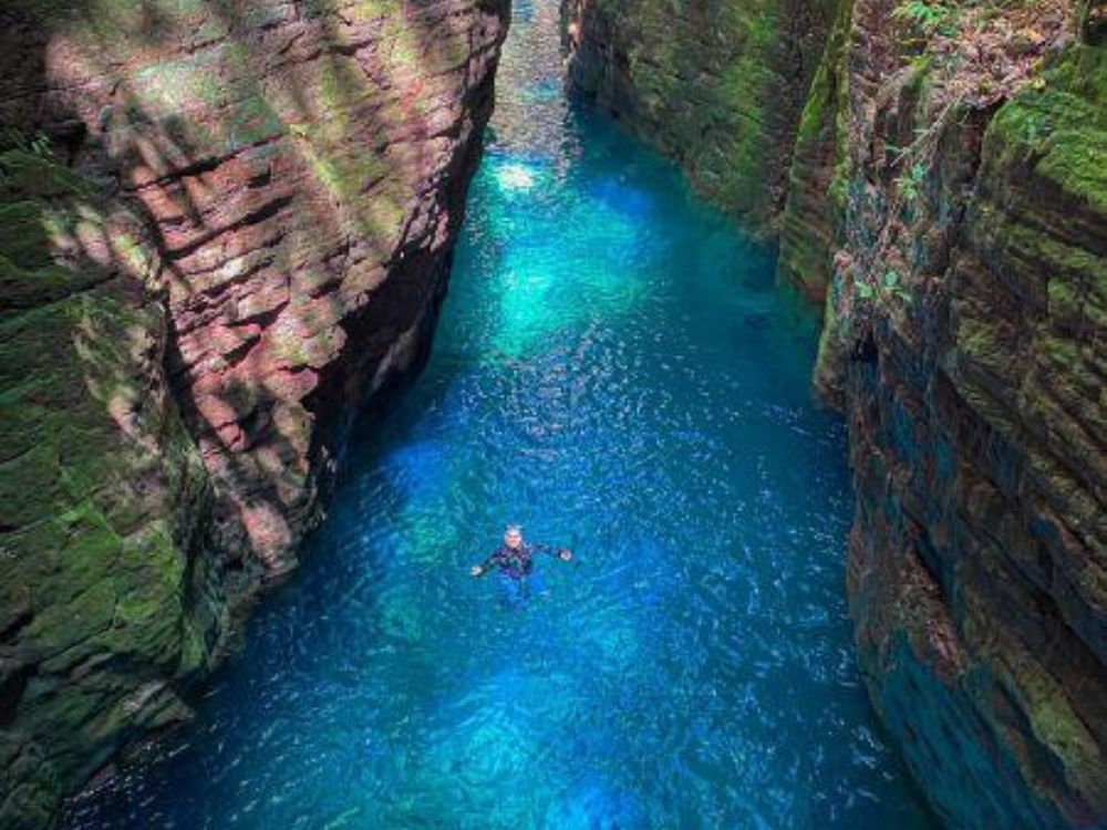 Acessamos o cânion por cima adentrando o cânion e acessando a cachoeira do sossego e dos amigos.