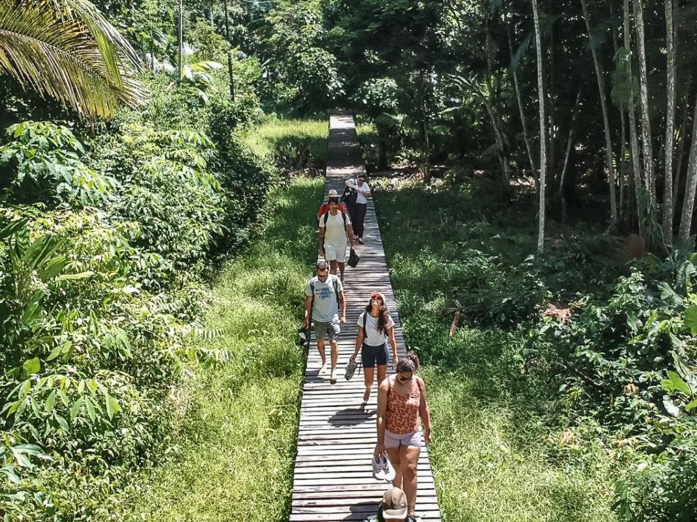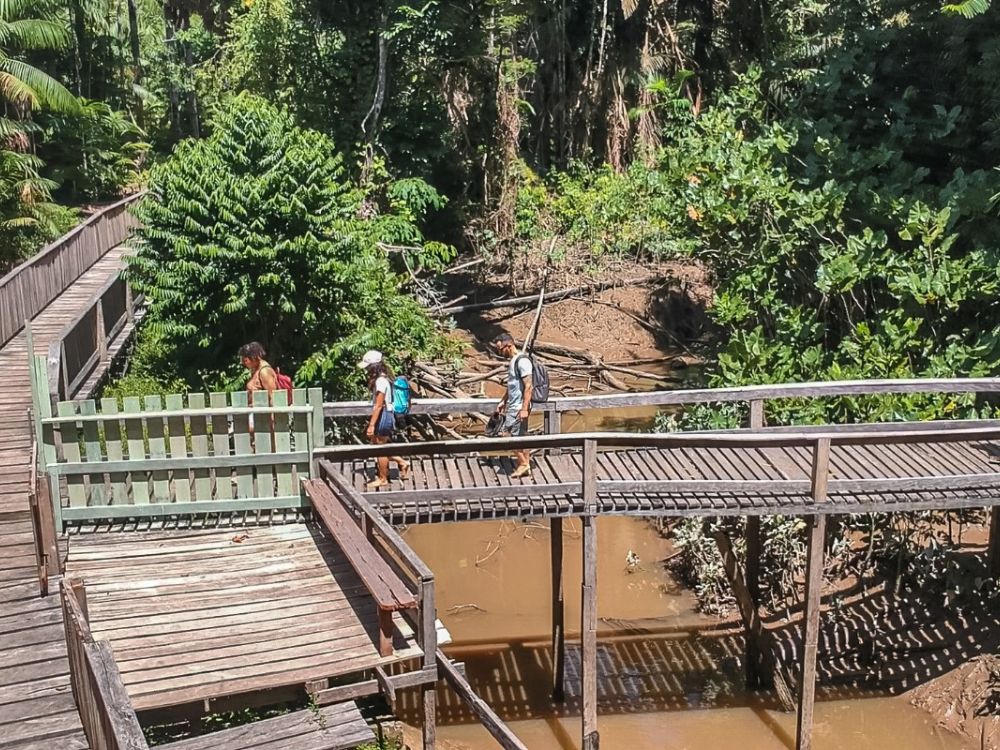 -Indo para um dos nossos momentos de contato mais especiais com a natureza: a trilha ecológica da Samaúma. A caminhada ecológica das Samaúmas é um passeio cheio de surpresas e encontros surpreendentes com a Floresta de Várzea, ecossistema típico da Amazônia. Na caminhada em meio aos açaizais, igarapés, passando por várias árvores nativas de pequeno, médio e grande porte, até o atrativo principal, a Samaúma, maior árvore da região amazônica. Parada para contemplar a árvore e ouvir os sons misteriosos da floresta.