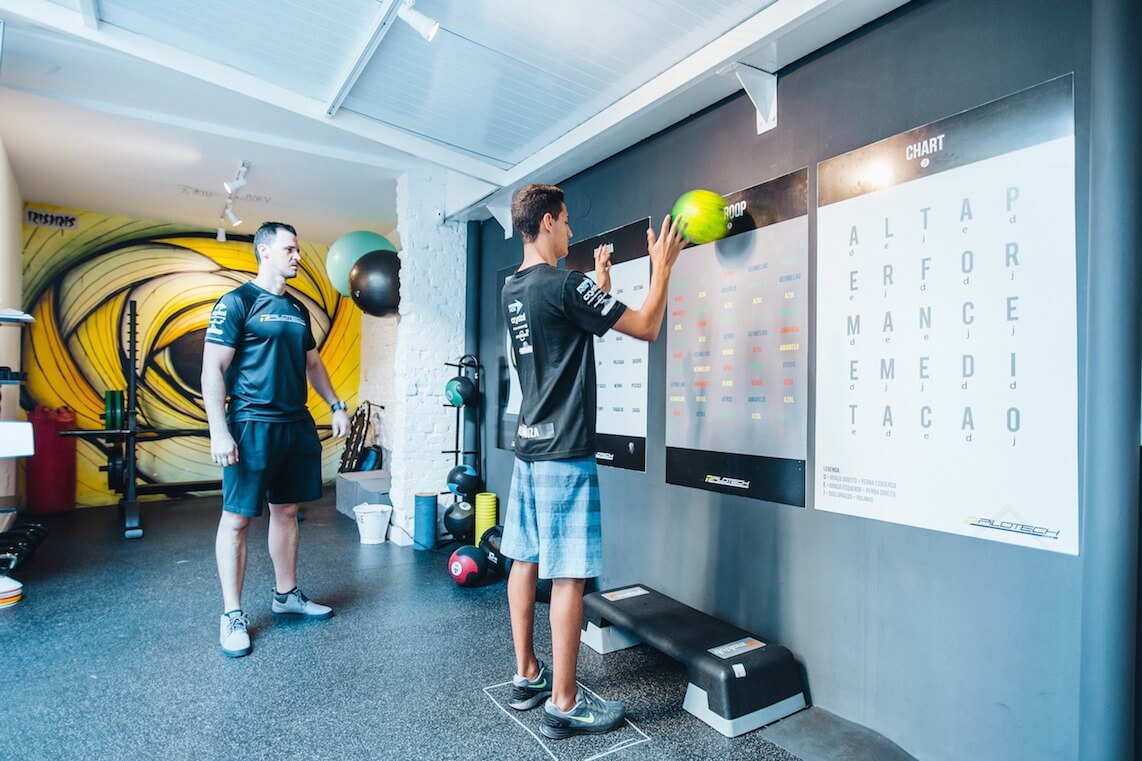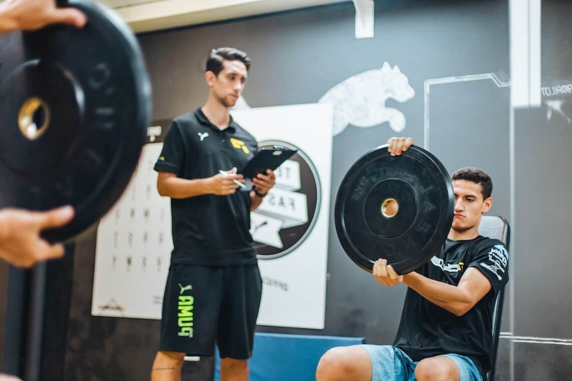Para treino no simulador indicamos sapatilha e luva, mas caso não tenha, sem problemas, pode ser tênis.