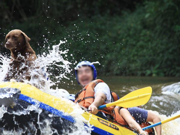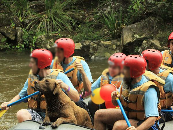 Os cães curtiram muito essa aventura, o contato com a natureza e com a água. Foram 5 km de percurso entre remanso e corredeiras, durante a descida foi possível aproveitar a paisagem, realizar algumas brincadeiras como o pulo na garganta e o surf.