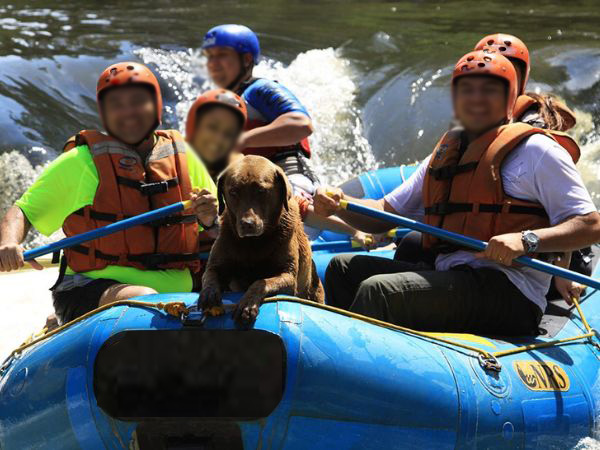 Bote muito maior que o tradicional, e que oferece muito menos de emoção na descida. Com 6 participantes, pode-se levar 2 Pets grandes ou médios + 1 Pet pequeno. Para cada participantes a menos no bote, pode-se incluir + 1 Pet de qualquer tamanho. É necessário um mínimo de 5 participantes por bote para remar junto com o Instrutor.