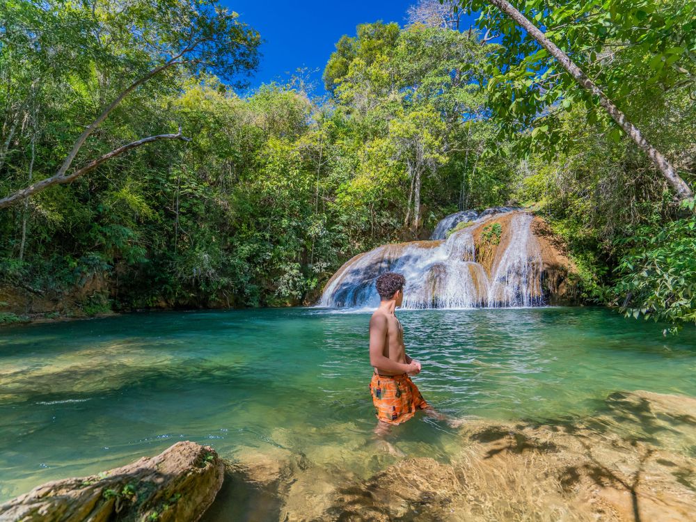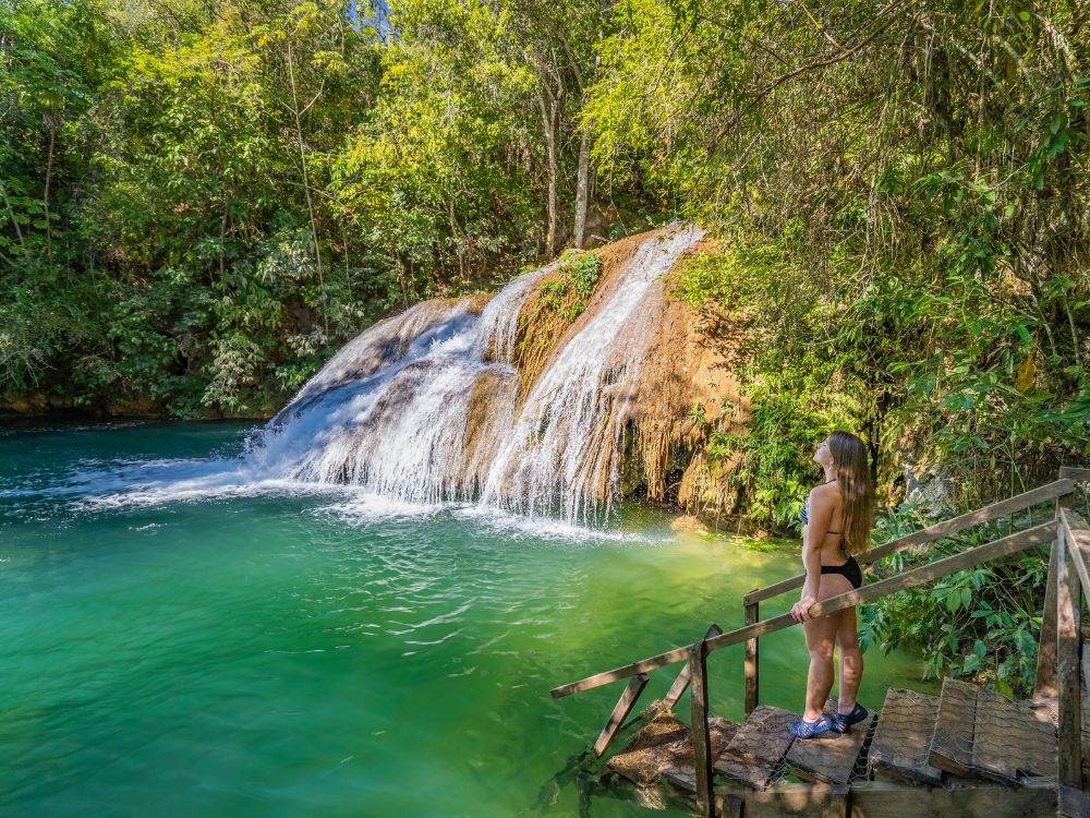 O passeio possui uma caminhada de 4000 metros pela mata ciliar do Rio Chapeninha, passando por 07 belas cachoeiras, pequenas grutas e piscinas natuurais, com 06 paradas para banho. O local possui lugares incríveis para lindas fotos como as pontes suspensas e o balanço. O local também possui o incrível mergulho superficial na nascente do Rio Chapena, que abriga uma caverna submersa explorada até 155 metros de profundidade!
