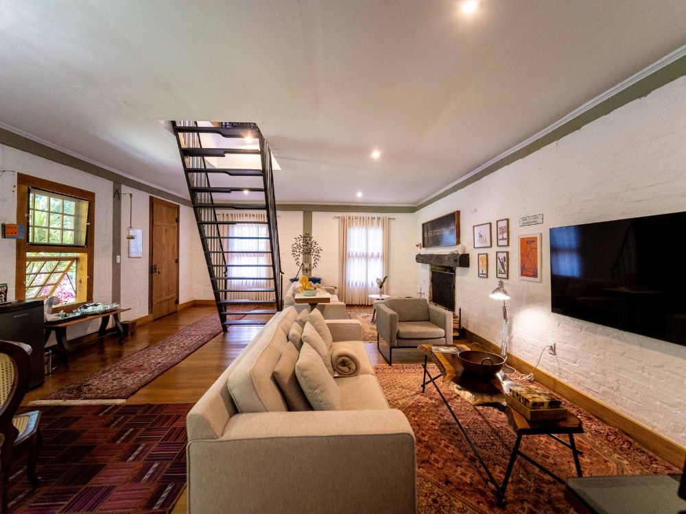 A casa conta com banheira, quintal privativo com fogo de chão e lareira a lenha.