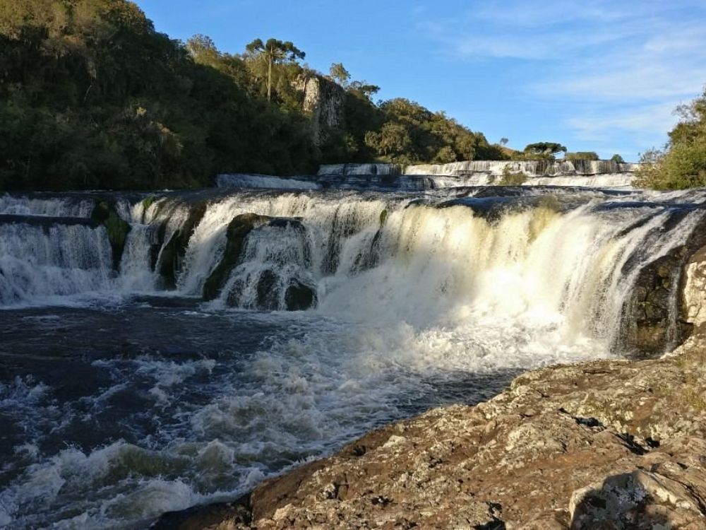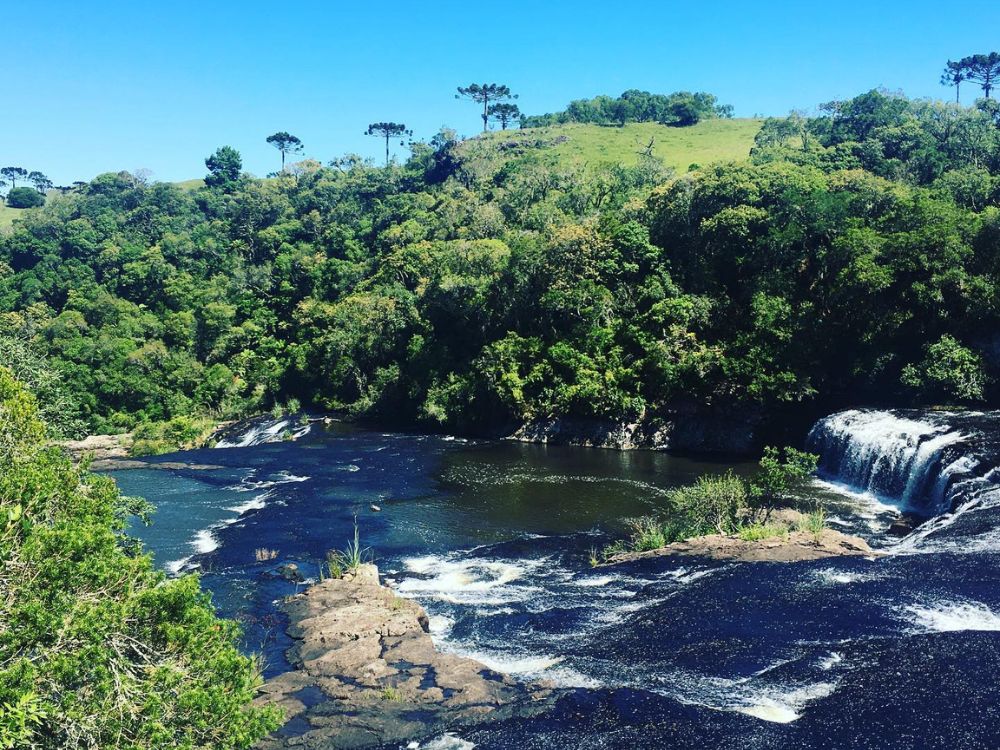 Aqui, a água cristalina dança em uma série de quedas, enquanto é acariciada pela exuberante mata ciliar de araucárias e pelos campos verde-amarelados de Cima da Serra.