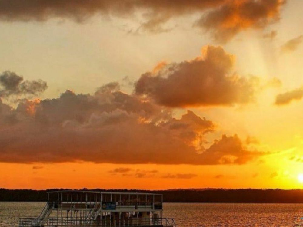O pôr do sol pode ser feito de catamarã ou do píer.