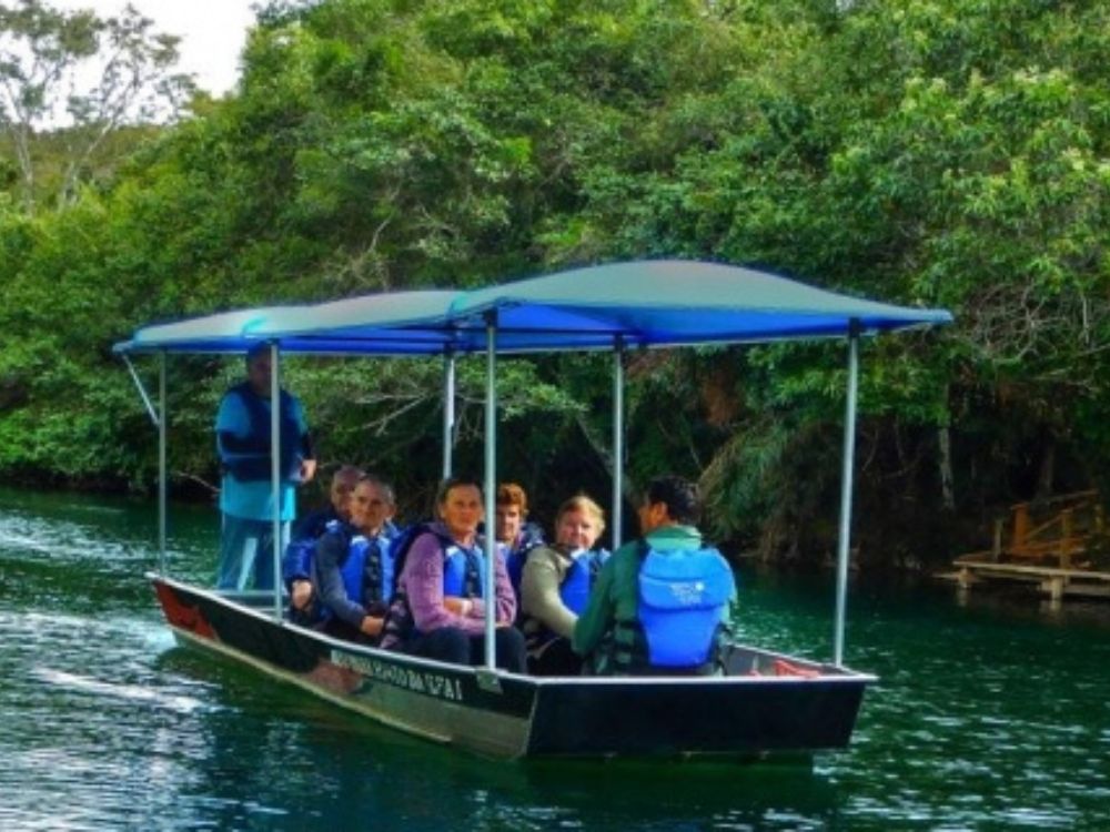 Essa experiência é realizado o passeio de Barco eletrico no Rio Formoso, ao final é realizado uma trilha até a imponente cachoeira do “Horminio” e a ponte de madeira.