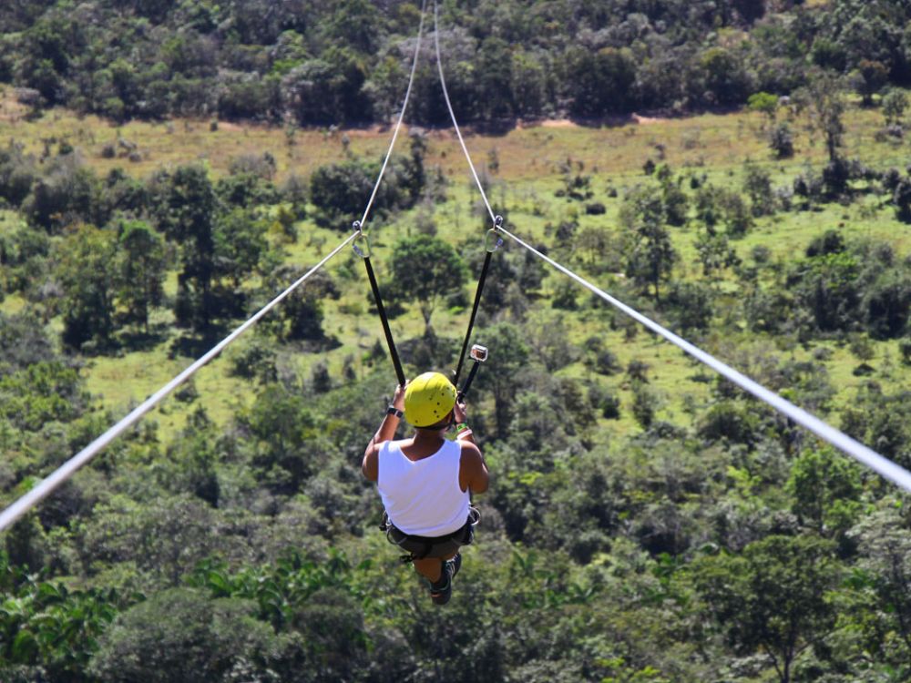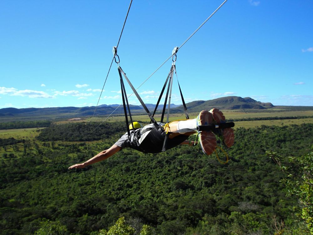 E uma atividade aventura passiva, que não exige técnica nem condicionamento físico específico do participante, permitindo a prática de maneira segura, inclusive para leigos, que simplesmente senta na cadeirinha, desliza pelo cabo de aço e contempla as belíssimas paisagens Chapada.