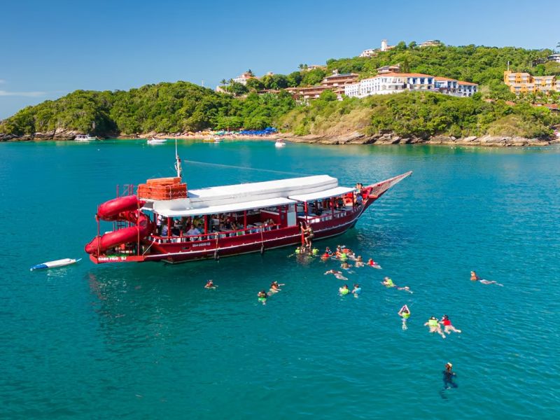 Embarque em um passeio de barco por águas cristalinas e descubra algumas das praias mais famosas e encantadoras da península, como a tranquila Praia da Tartaruga, a charmosa e preservada Praia Azeda, e a vibrante Praia de João Fernandes, perfeita para fotos e momentos inesquecíveis.
