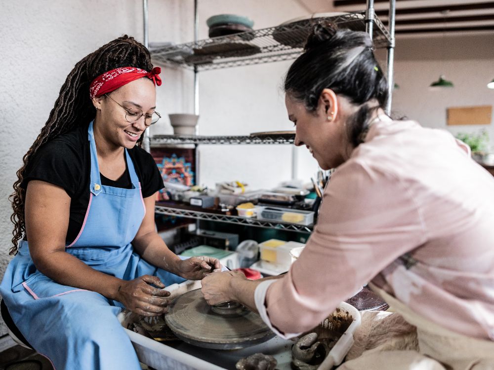 Durante a experiência, voce mergulhará nos processos fascinantes da cerâmica – desde o início, falando sobre o barro, a peodução, as técnicas e até os toques finais, com a esmaltação.