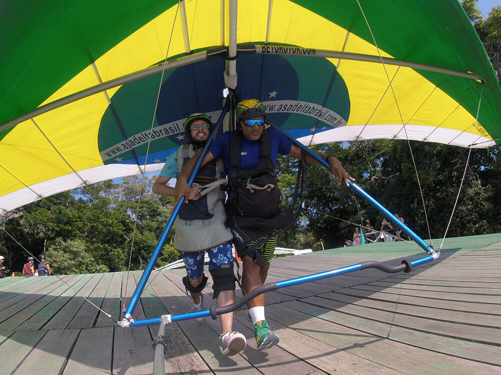 Os voos duplos são realizados na rampa da Pedra Bonita localizada dentro da Floresta da Tijuca no bairro de São Conrado! Ao chegar no ponto de encontro, a equipe irá te buscar para realizar a experiência, além disso, o voo conta com câmeras que vão registrar toda a experiência para você não perder as melhores caretas!